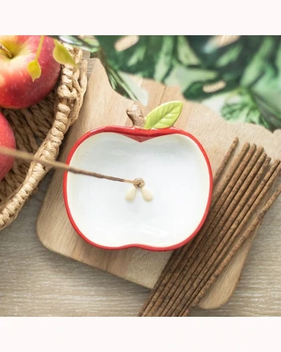 Enjoy the simple things with this beautifully crafted ceramic incense holder in the shape of a sweet, red apple. Perfect for creating a peaceful atmosphere or gifting to someone who loves quirky home accessories.