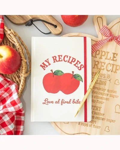 Organise your favourite recipes in this charming A5 notebook, complete with a handy pen for jotting down kitchen creations. A lovely gift for bakers, chefs, or anyone who loves to cook up magic in the kitchen. 100 sheets / 200 lined pages.