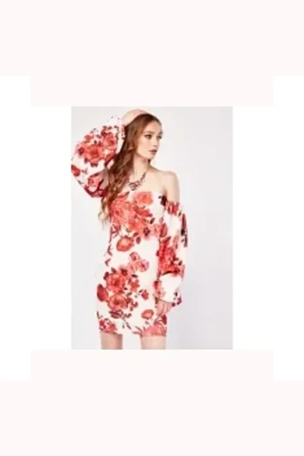 : Off Shoulder Floral Dress White/Multi UK 6