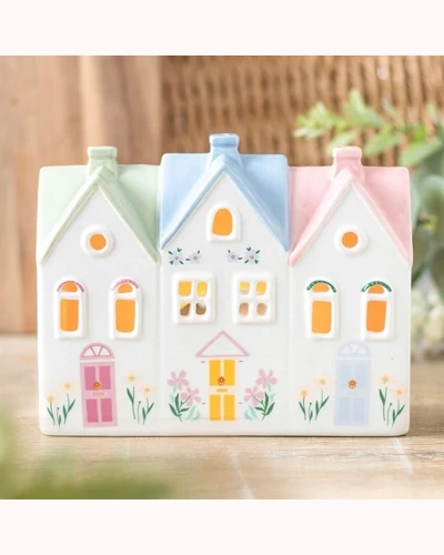 Fill the home with warmth and charm with this pretty house-shaped tealight holder which also doubles as an incense cone burner. Pretty and practical, it's a decorative detail with subtle pastel hues to compliment any space.